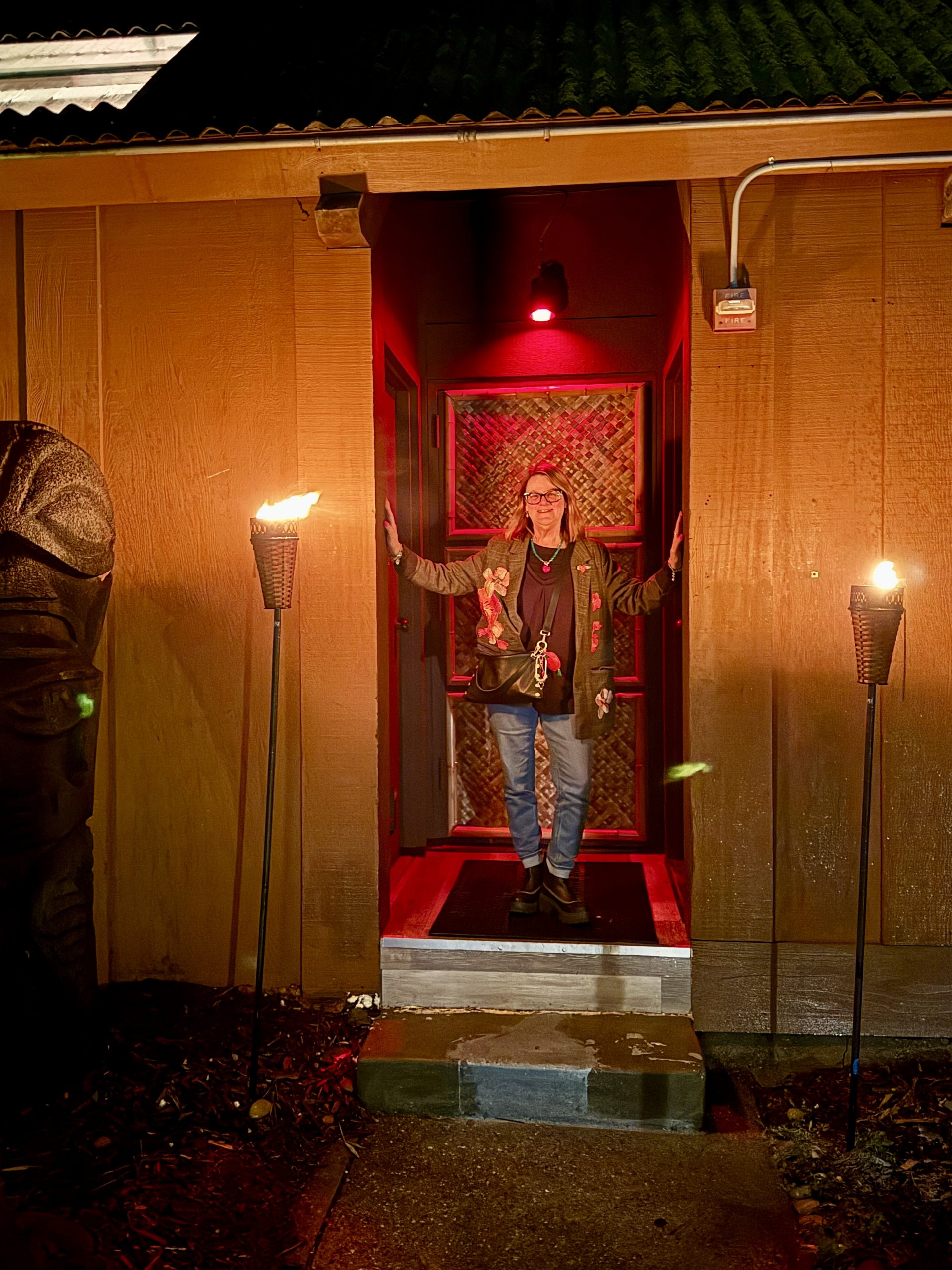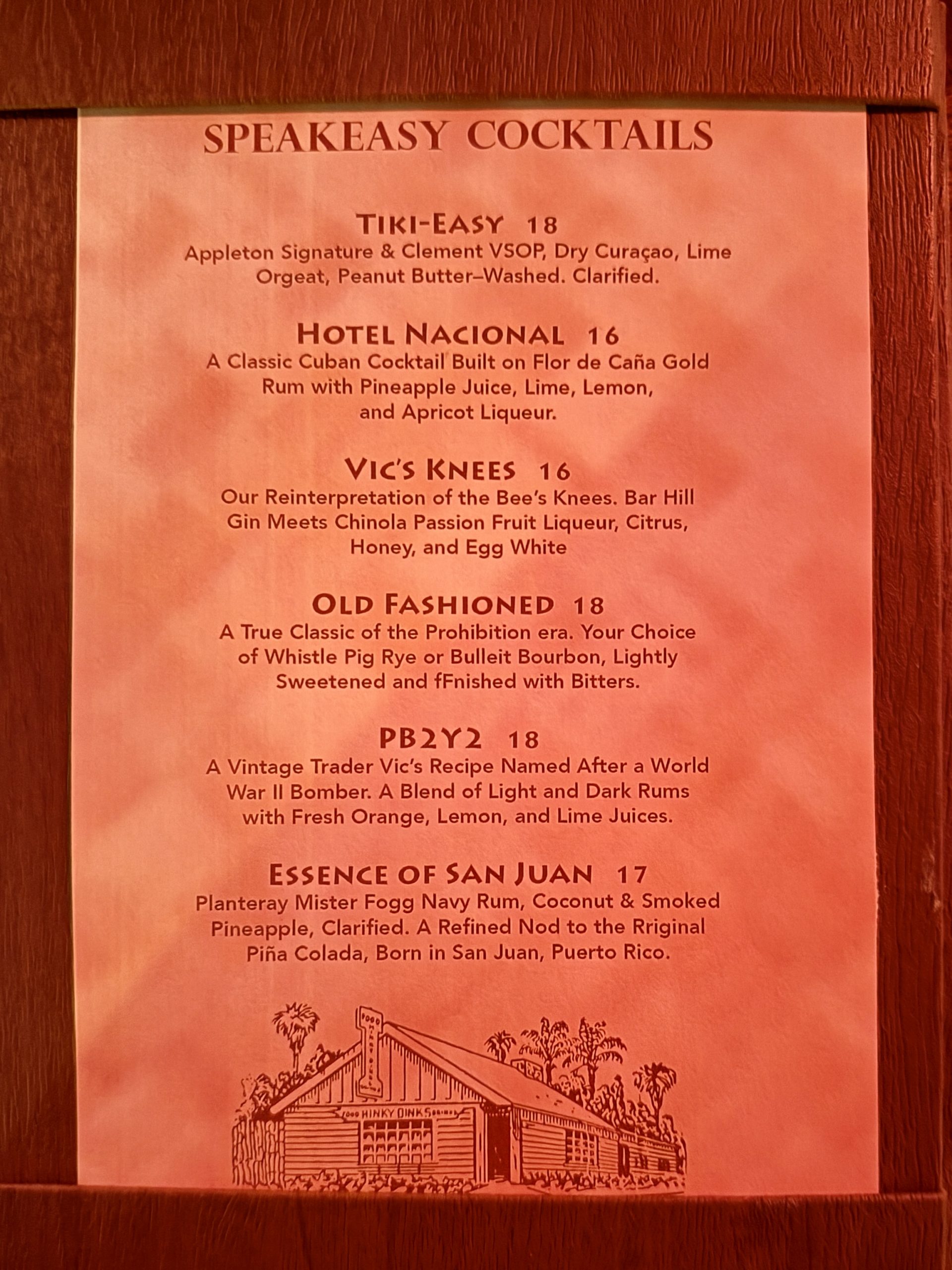 The speakeasy motif was in force as you entered via the side door and you had to say the password obtained by calling the Trader Vic’s telephone number. This was a fun way to start the evening, including torches and a bright red light.