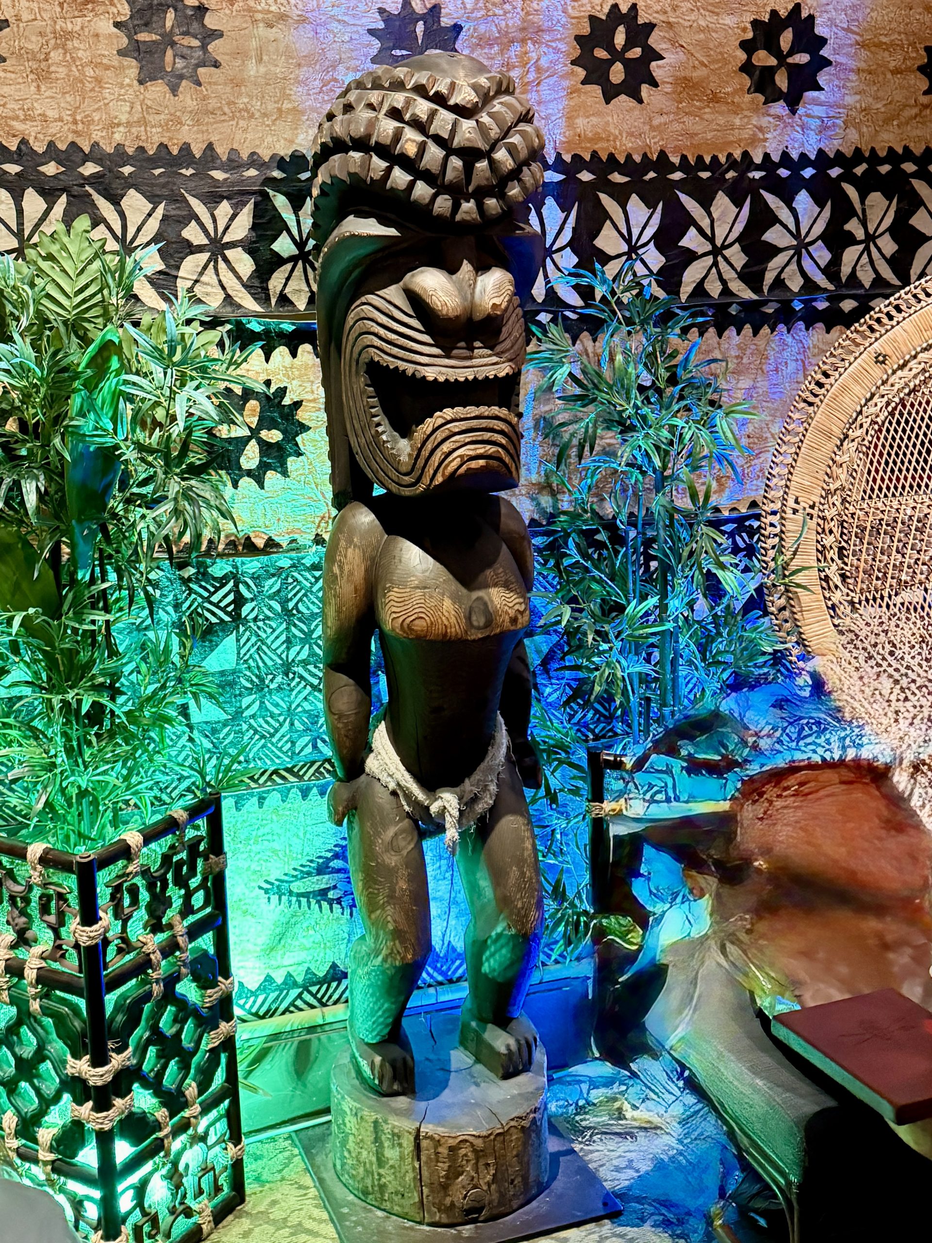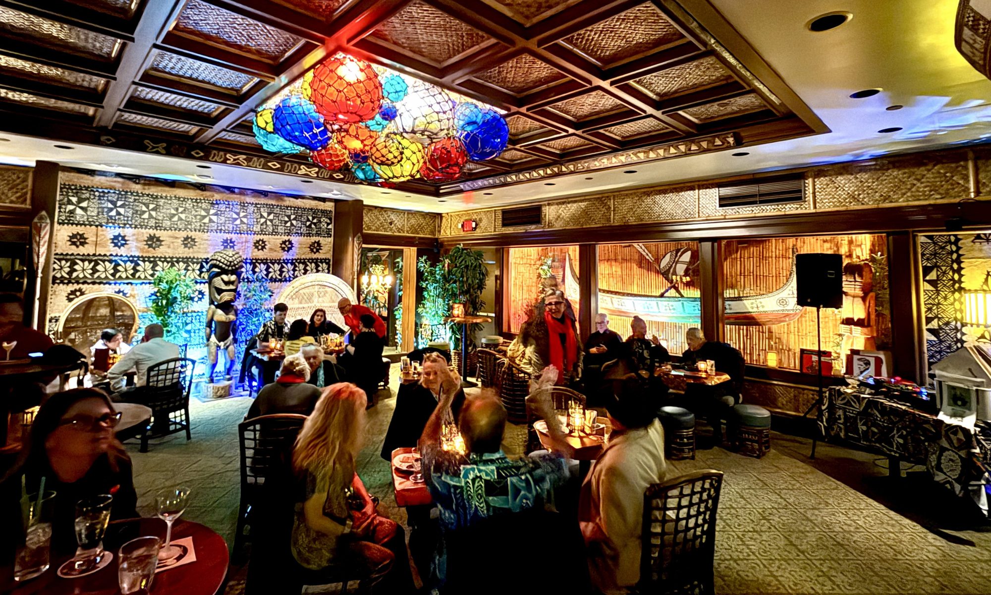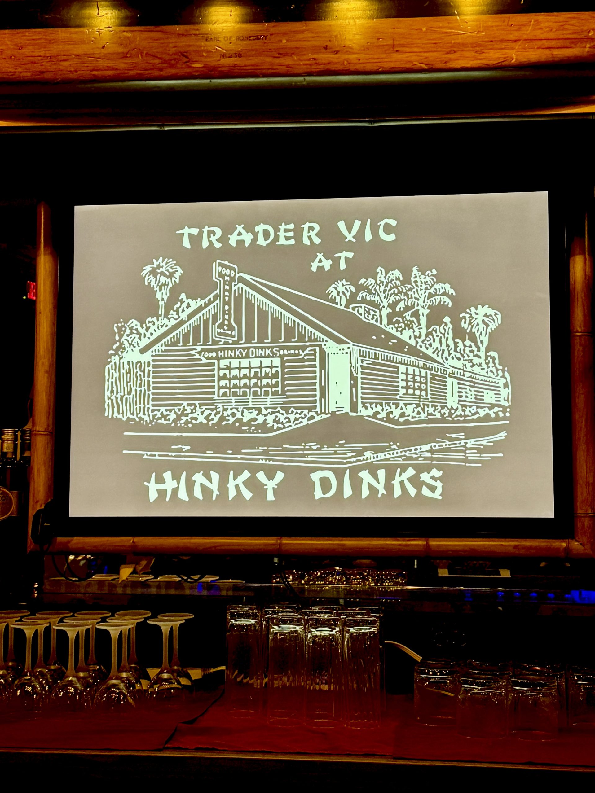 Trader Vic’s Emeryville is normally dark on Tuesdays but on this rainy February night opened the Lanyu Room as Hinky Dinks Speakeasy. This event featured a special cocktail menu including some small bites, paying tribute to Trader Vic’s original restaurant at 65th and San Pablo Ave in Oakland that opened in 1934 (this venue was later renamed Trader Vic’s, as you might have heard). Era-specific standards from DJ Speakeasy Ray set the mood perfectly, as did the mood lighting. Artifacts from the now-closed Trader Vic’s London were also a focal point.