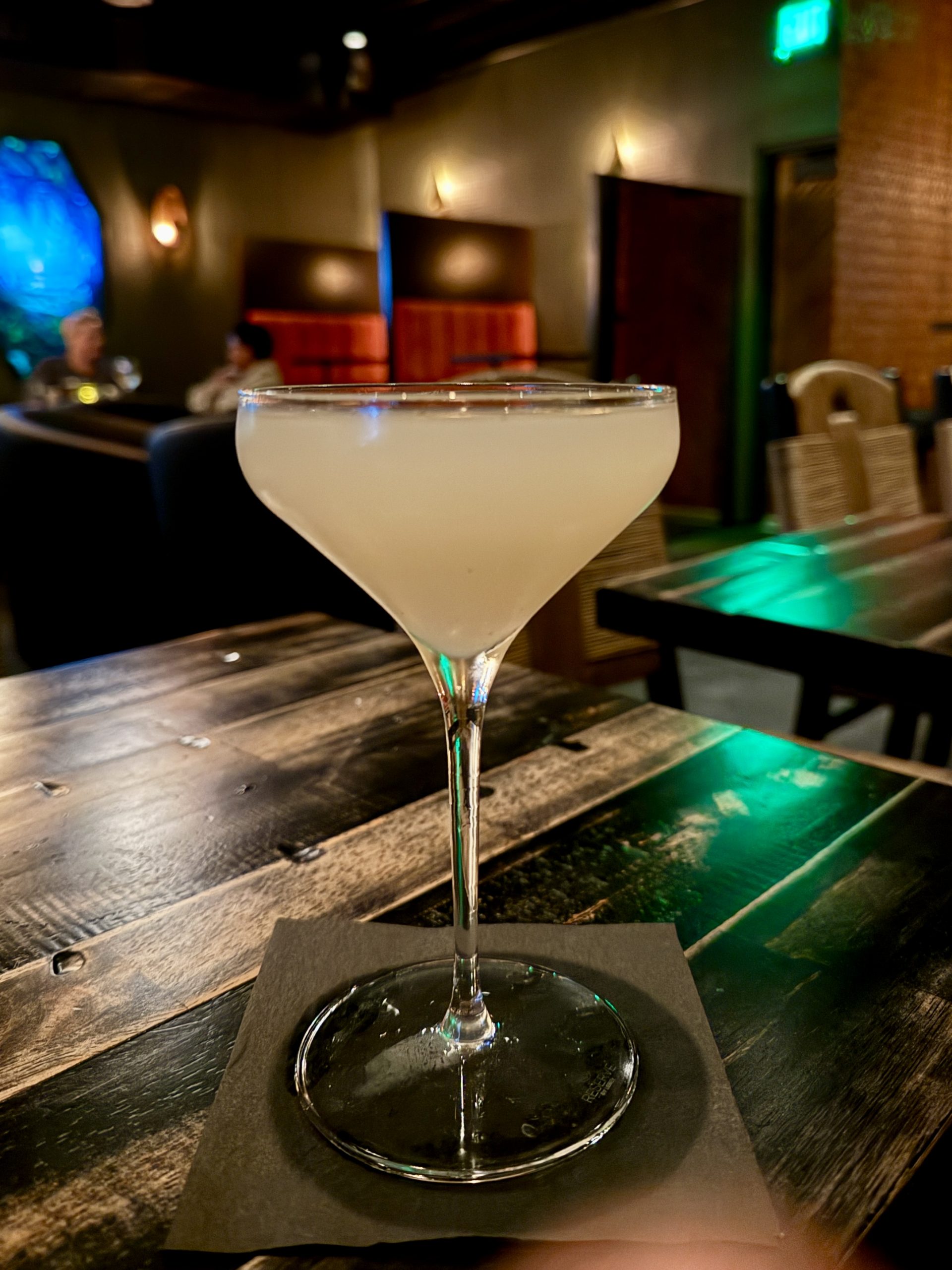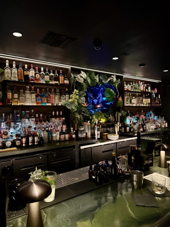 The menu has all kinds of fun nods, including “For a Good Time, Call 1-888-87-PROWL” (call it, it works), Monstera Mash, and Mustache Ride. As a fan of the Anchorman movie back in the day, I was immediately were drawn to Sex Panther and then very intrigued by the Mai Tai meets Margarita ingredient list that includes Mexican rum, tequila, pepita orgeat, and of course “bits of real panther.” This was a good cocktail, though I would have preferred it over crushed ice rather than served up.