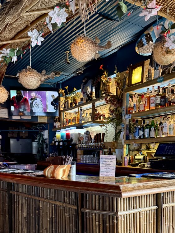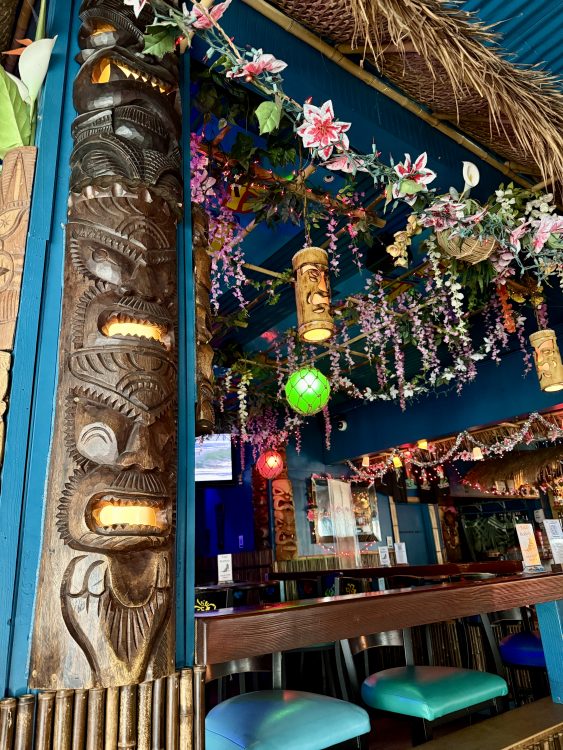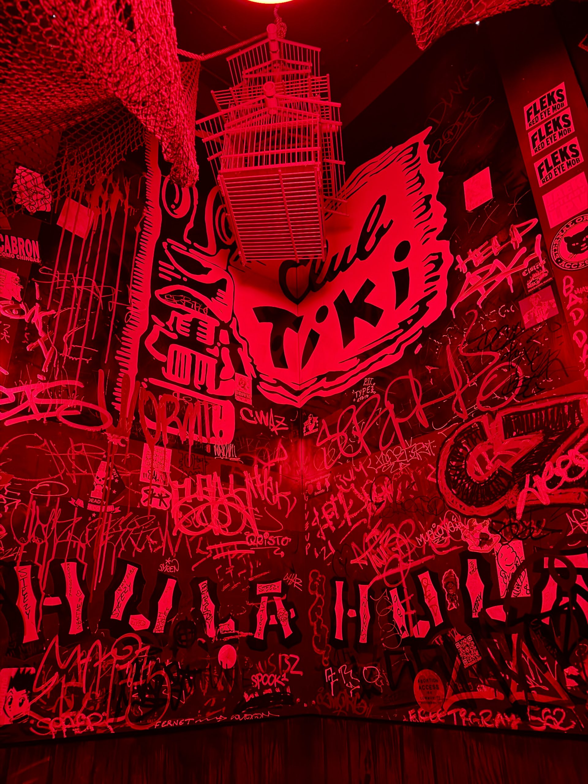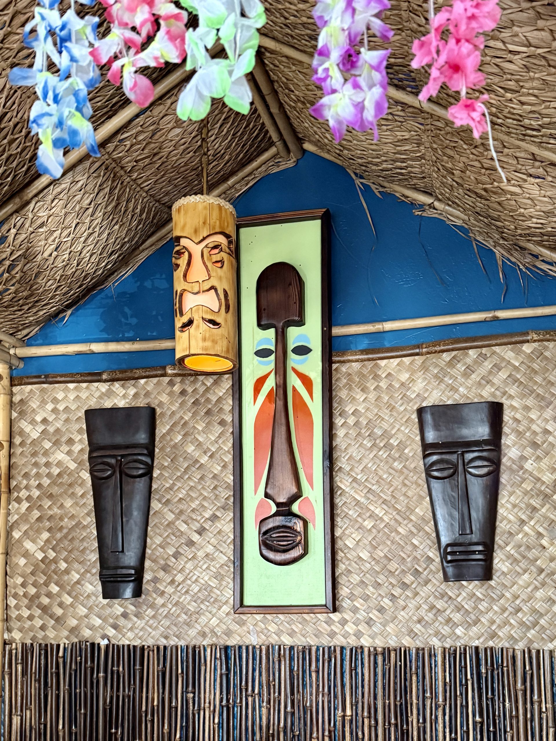 The exterior of Hula Hula is a technicolor wonder, with nods to Hawai’i and tiki generally, a theme which continues inside. This isn’t a cohesive space designed by a master craftsman, but instead it’s hangout bar with lots of legit tikis and eye candy, some booths, and a couple rooms to relax in. I sat near the bar, overlooking the karaoke stage that gets going later in the evening, and I really enjoyed the vibe inside that include a ton of retro rock that included the B-52s and The Runaways. The restroom had a completely different exotica soundtrack and was so impressive I didn’t dare leave a stick on the wall.
