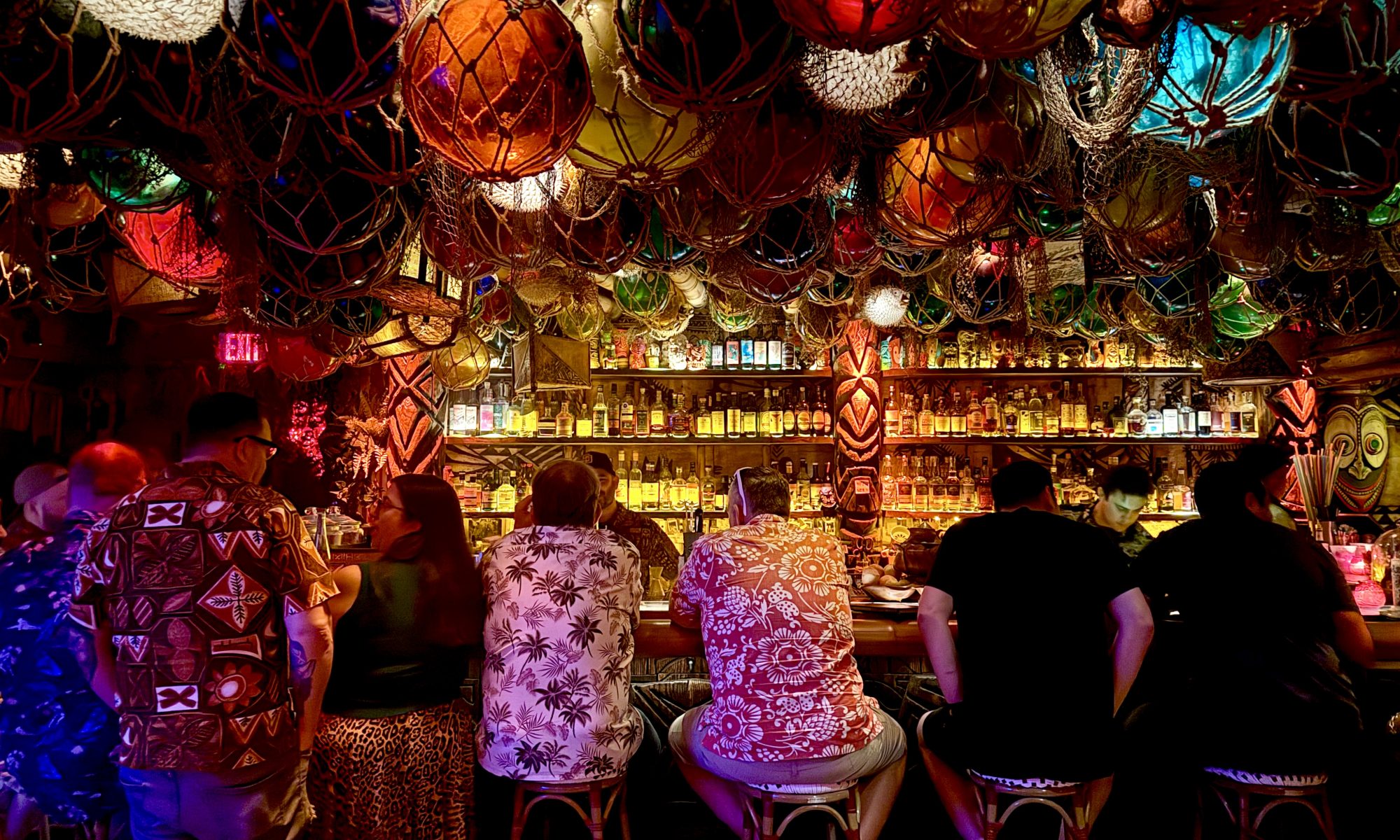 We skipped False Idol last year but prioritized visiting this time, making a reservation on Wednesday before Tiki Oasis. The bar was super crowded, but tables are given to those with reservations which helped. We’re aways impressed by the small but immersive bar that features great music and a ton of fish floats and an elaborate number of wall carvings by local legend Bosko Hrnjak.