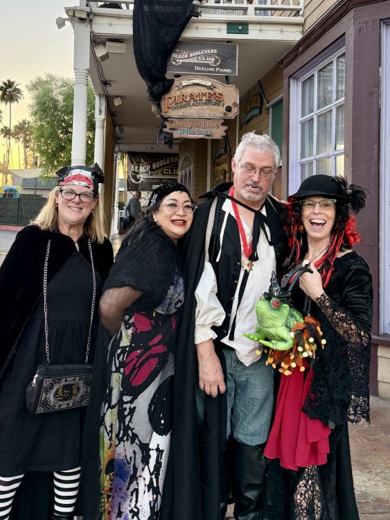 Our Buena Park weekend continued at the Pirates Dinner Adventure, a swashbuckling counterpart to Medieval Times down the street. The show includes a detailed plot, two romantic subplots, acrobatic performances, songs, fight scenes, and plenty of elements to involve the crowd. Dinner includes soft drinks plus soup or salad and a chicken main course – plus utensils to eat with that aren’t provided at the other place. This was a fun time with our large group, some of which dressed up for the event.