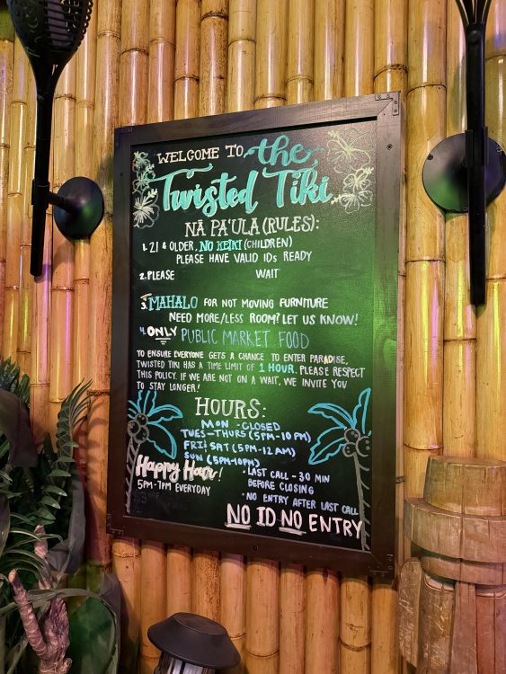 After our dinner on Saturday at Strong Water Anaheim, some of us wanted to keep the tiki thing going so we ventured out to see what else Orange County could offer. We attempted Stowaway in Tustin, where Mrs. Mai Tai and our friends had pre-gamed earlier, but when we arrived it was mid-evening and around an hour wait. Since none of us had been to Twisted Tiki in nearby Santa Ana we thought we’d give it a shot.
