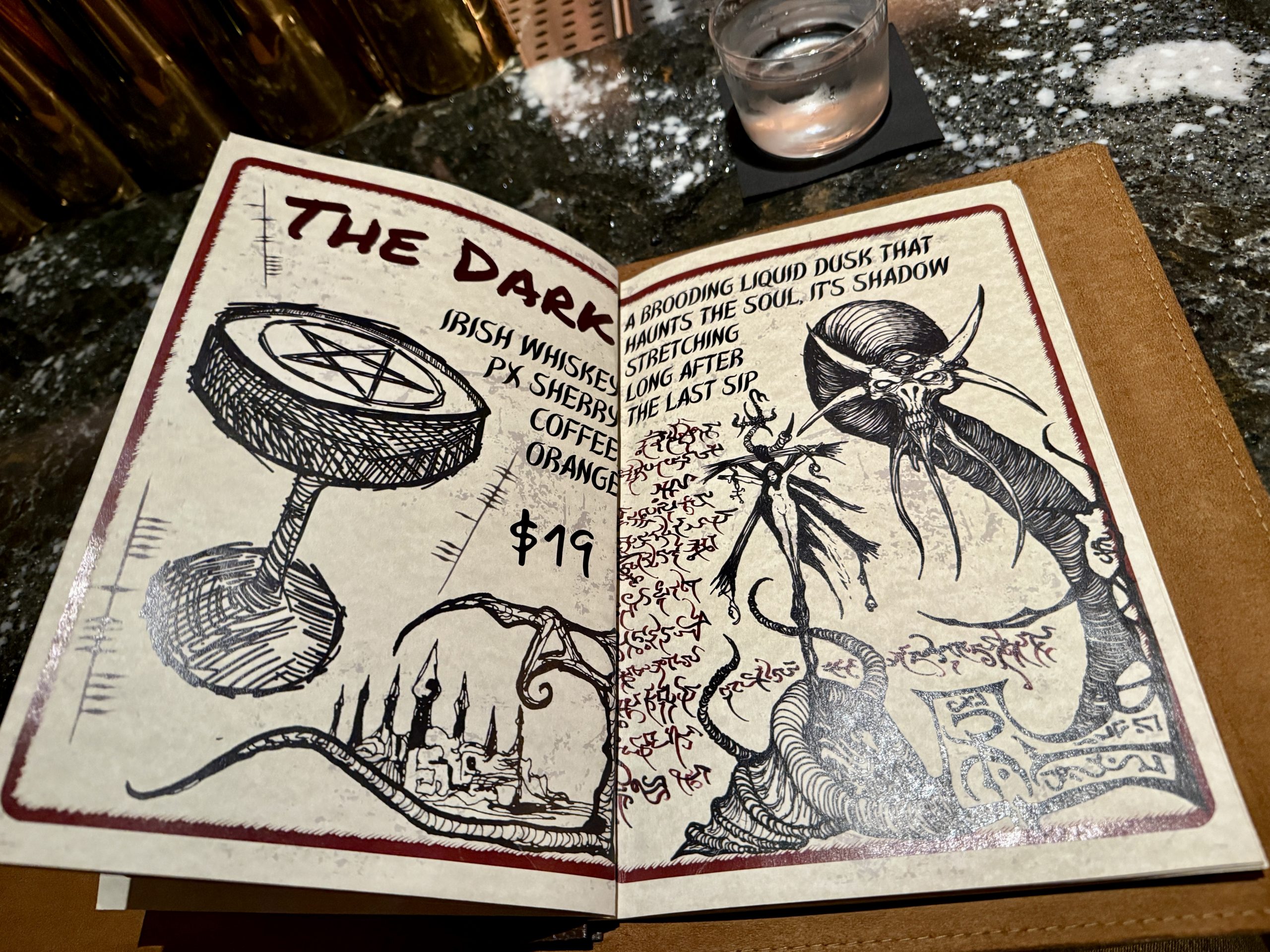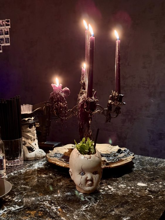 Upon entering the speakeasy inside Still O.G. you’ll be told that the entire staff was killed and what you’re witnessing are the ghostly apparitions. You’re provided with a small welcome punch to drink to complete the effect. We were seated at the bar and could see the decor has been transformed with dark elements and a great modern dark wave soundtrack.