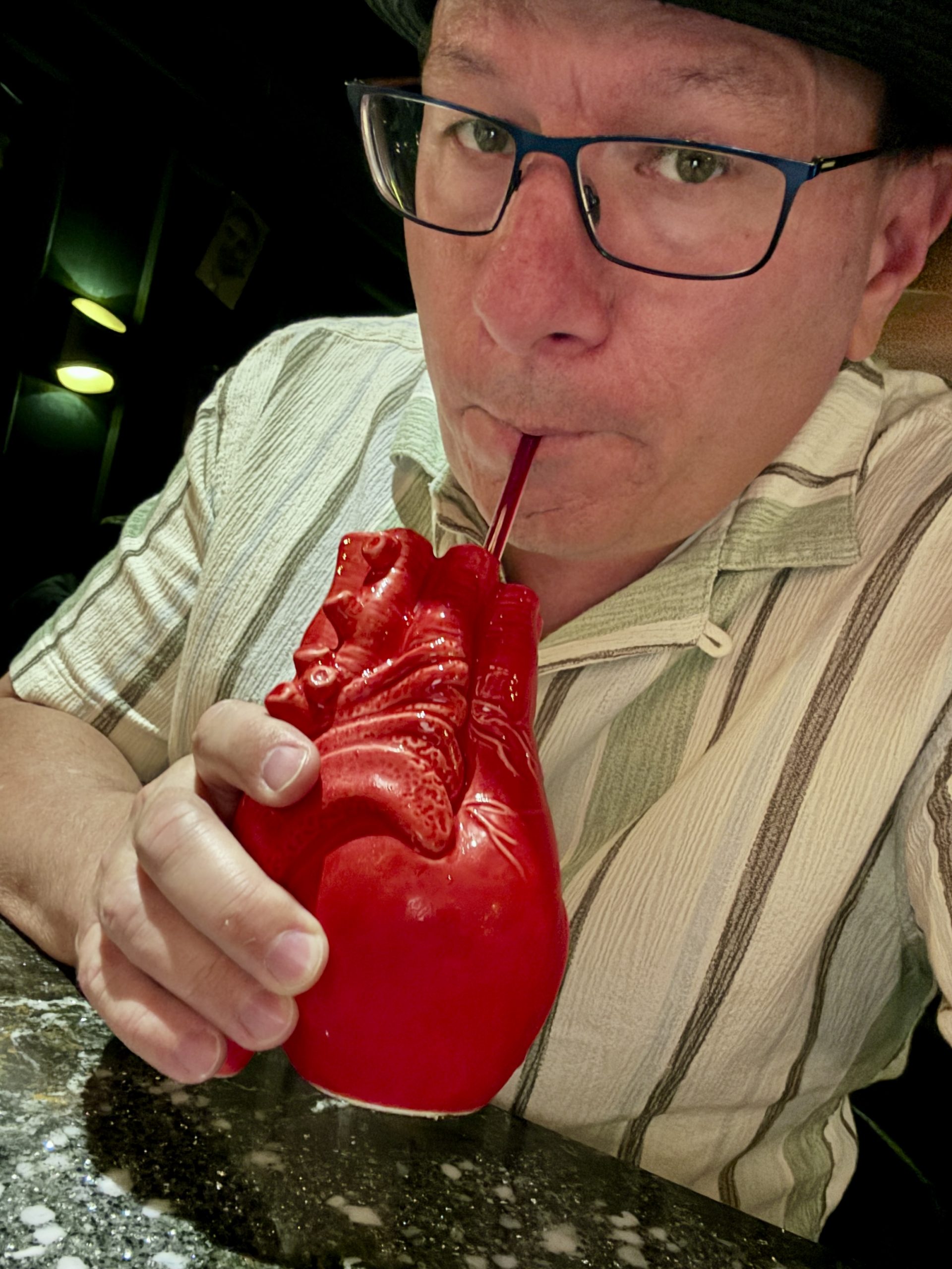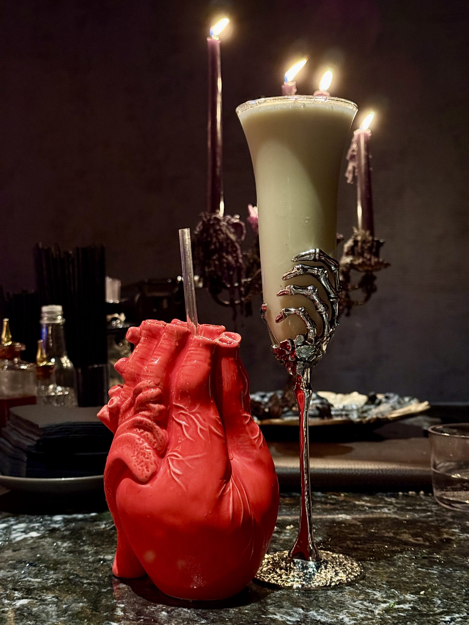 Our second round started with the Witching Hour which is basically a boozy chocolate milk served in a flute. Perhaps the best overall for me was my Telltale Heart which uses beet and Alchermes for a red color that works fantastically with the mug that’s shaped like a heart. We were truly impressed by the cocktails.