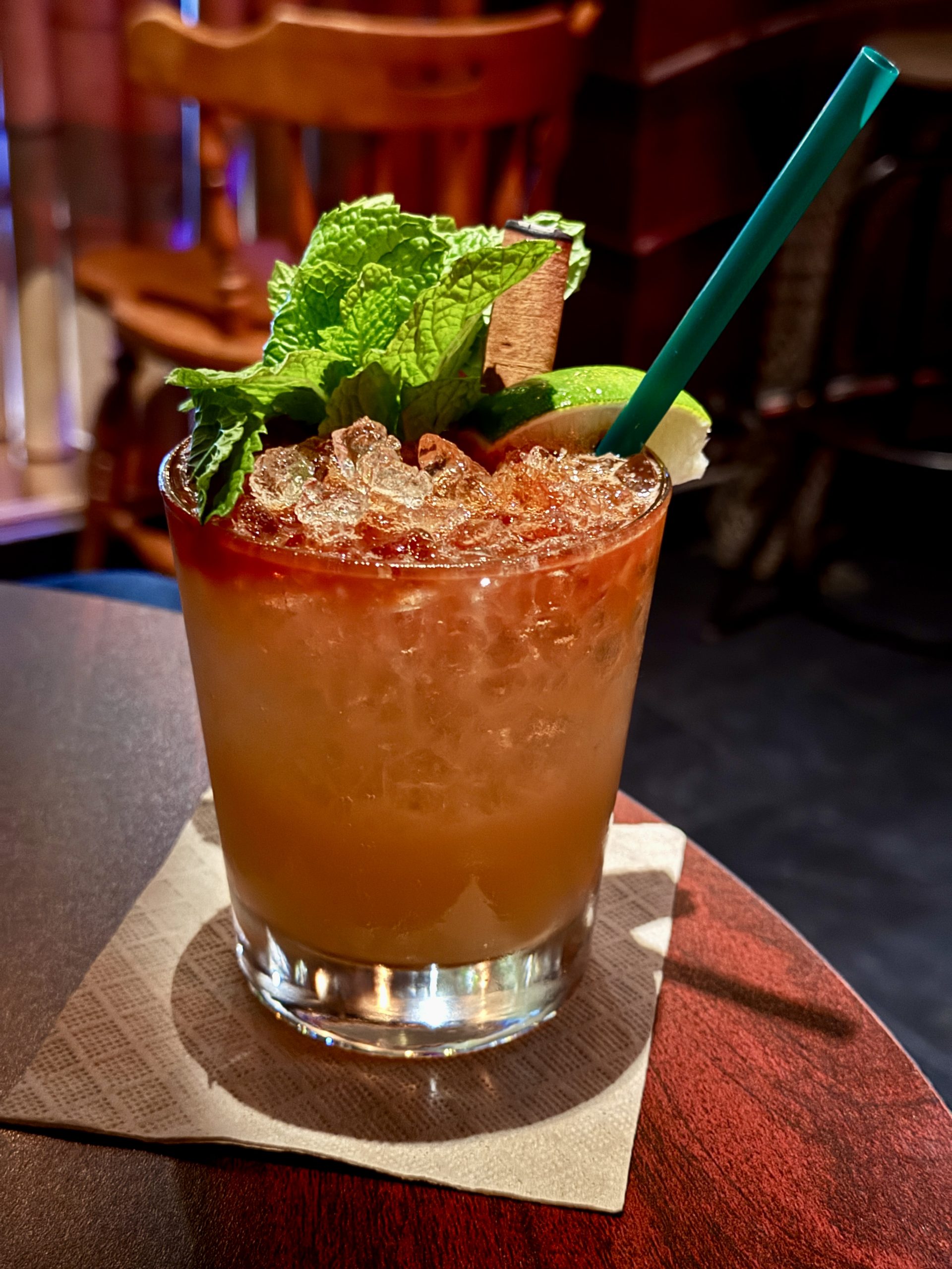 I’d heard the Mai Tai’s rum blend was reformulated but after scanning the menu I couldn’t help but get a Donnie’s Element, a banana/coconut/coffee cocktail with spiced rum that was developed by Chris Day and served at The Kon-Tiki during Day’s tenure there. It’s a truly fantastic cocktail and am so glad to see Boo Loo Lounge serving it. Mrs. Mai Tai ordered the Voodoo Grog that surprisingly is pretty heavy on the Rhum Agricole and so not really to her liking (or mine, really), though she did love the Donnie’s Element.