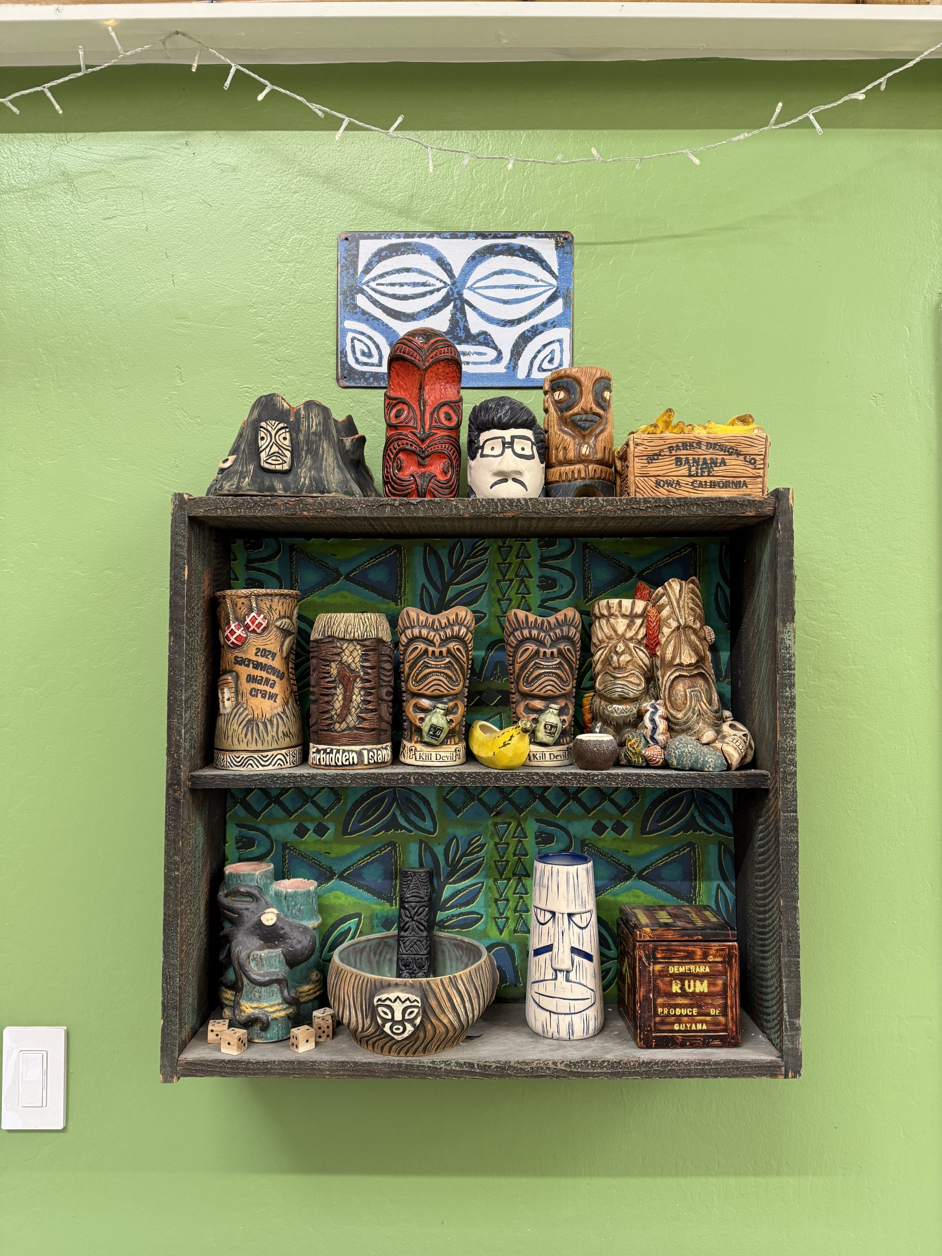 Woody also showed off some mugs connected to new tiki bar projects that look amazing, plus the recently released collaboration with Smuggler’s Cove and a wall of his greatest hits. He was also kind enough to sign a few Kon-Tiki Oakland items I’ve collected over the years.