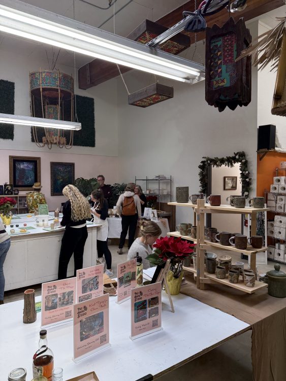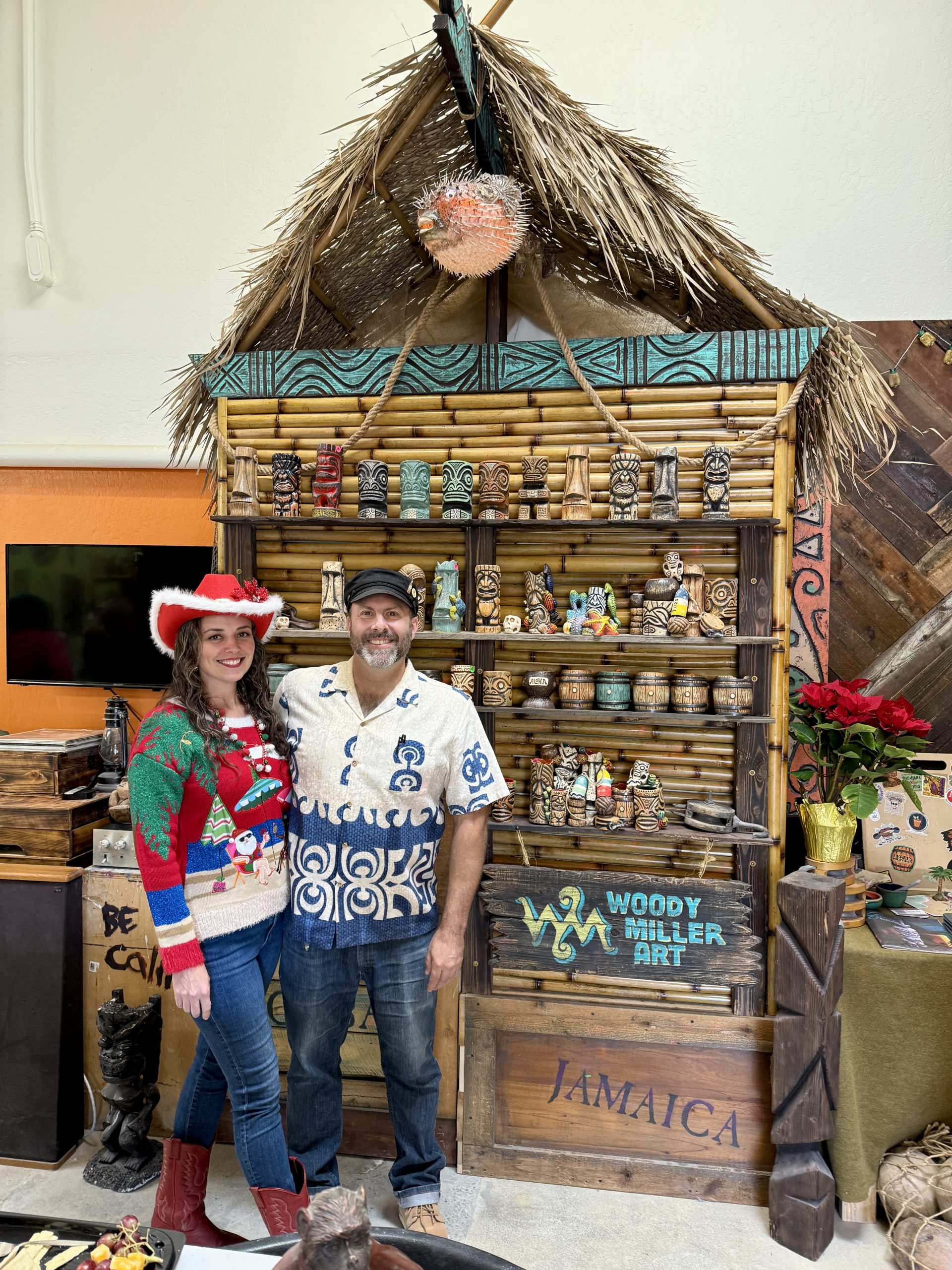 Sunday afternoon’s drive up to the Oakland Hills was so pleasant but paled at the festive time at Pau Hana Studio‘s Holiday Open Studio. The event showcased the activities at the studio, focusing on Woody Miller’s ceramics, lamps, and other art that’s featured in tiki bars far and wide. Additionally, there was a mini marketplace with artist in residence Laura Head, Joe Kent’s alohaware, and some really great sweet treats from Bristlecone Bakery. Lively festive music from DJ Danny Santos set the mood, plus some drinks and treats for those visiting.