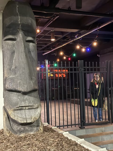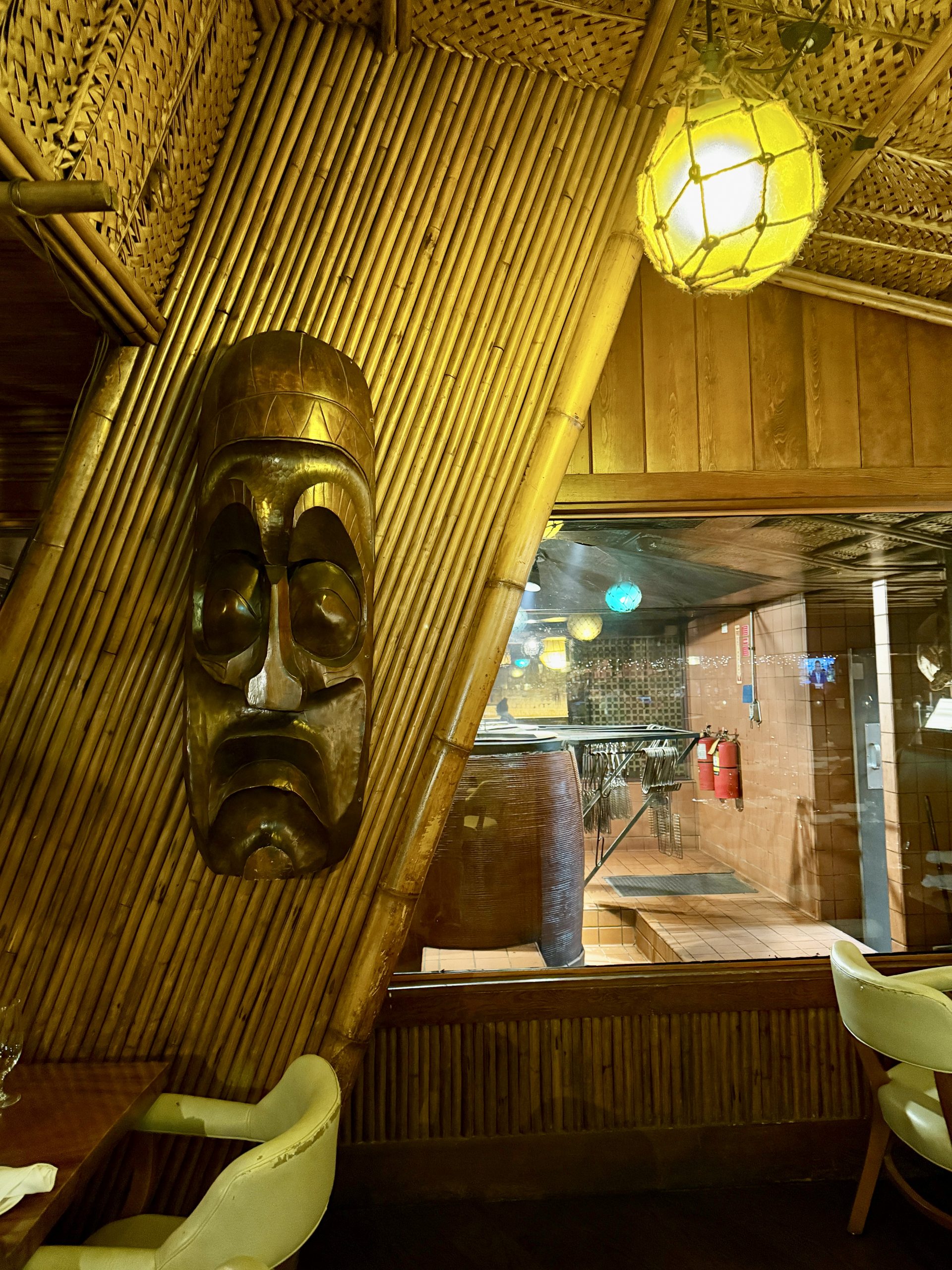 Toward the back of the venue there’s a patio or sorts that serves as a smoking section. There’s a large Barney West Moai facing the street and bright Trader Vic’s signage back there as well. The venue has many pieces of original art and decor, historical displays, and signature Chinese Ovens, making this a true time-machine for those looking for a vintage experience.