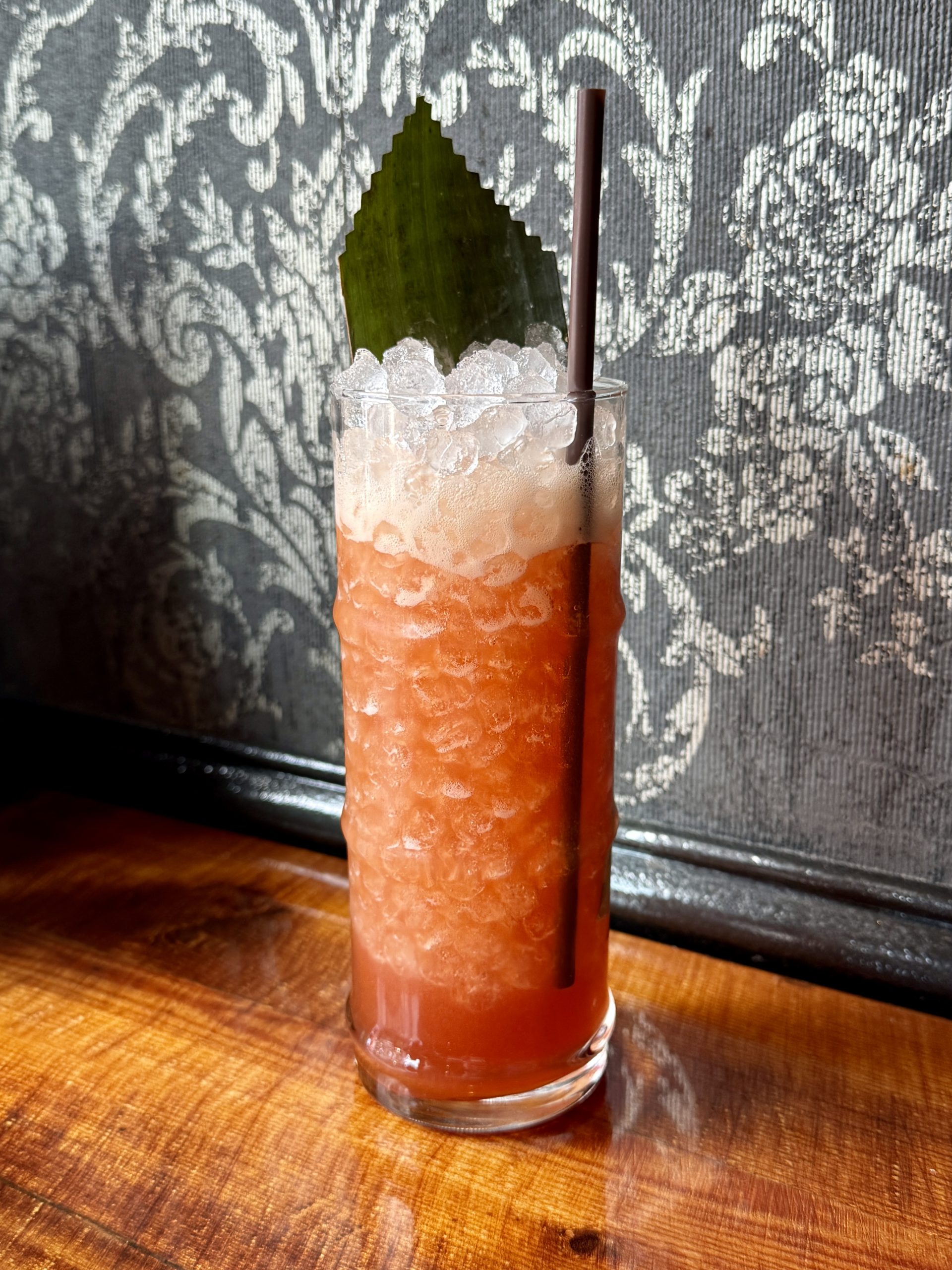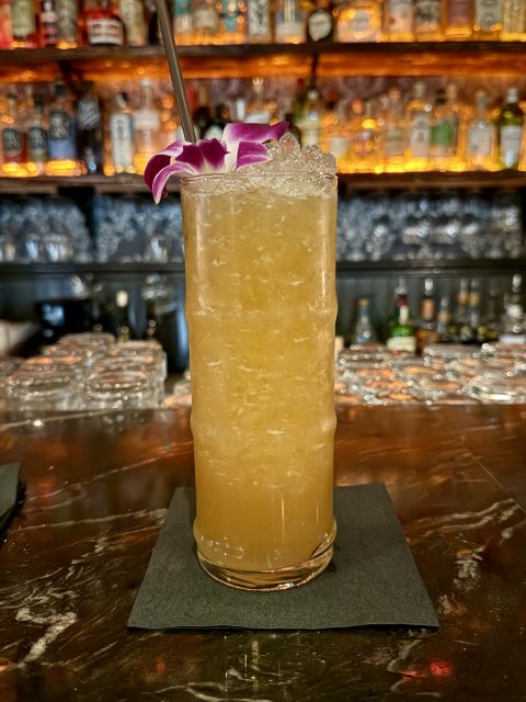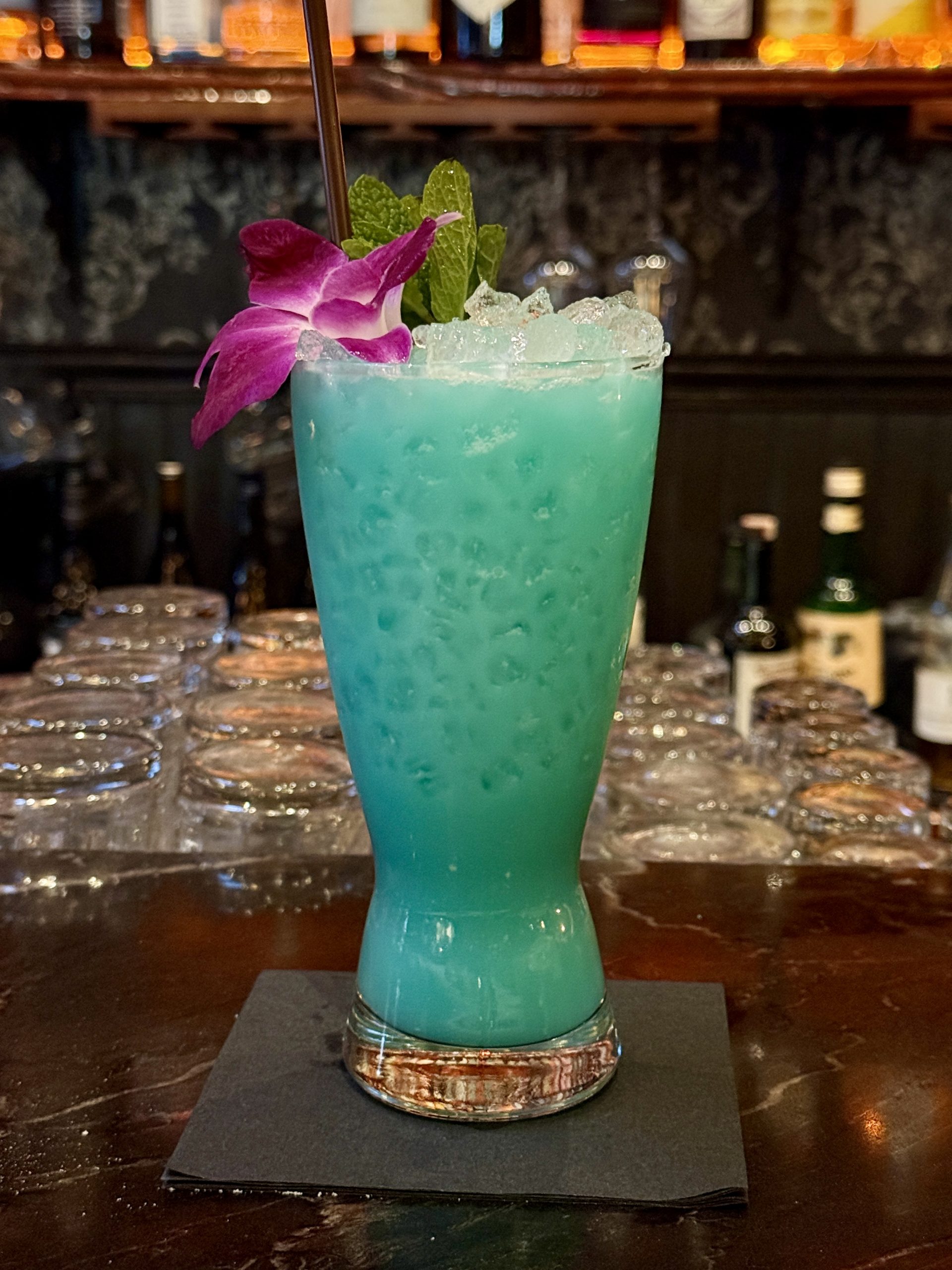 There are a few “tribute” recipes including a Pearl Diver that uses Coco Lopez as the base for Gardenia Mix, but the vast majority of the drinks are Justin’s original creations that are truly outstanding. During my two visits to Rocco’s I sampled the Port Royal Punch, the creamy blue Cherry Blossom, and the Black Orchid which I consider to be Justin’s masterpiece. Each one of these was really great, and Justin’s skills as a bartender also came into play with a delicious custom Mai Tai made with Jamaican and Demerara rums, my favorites.