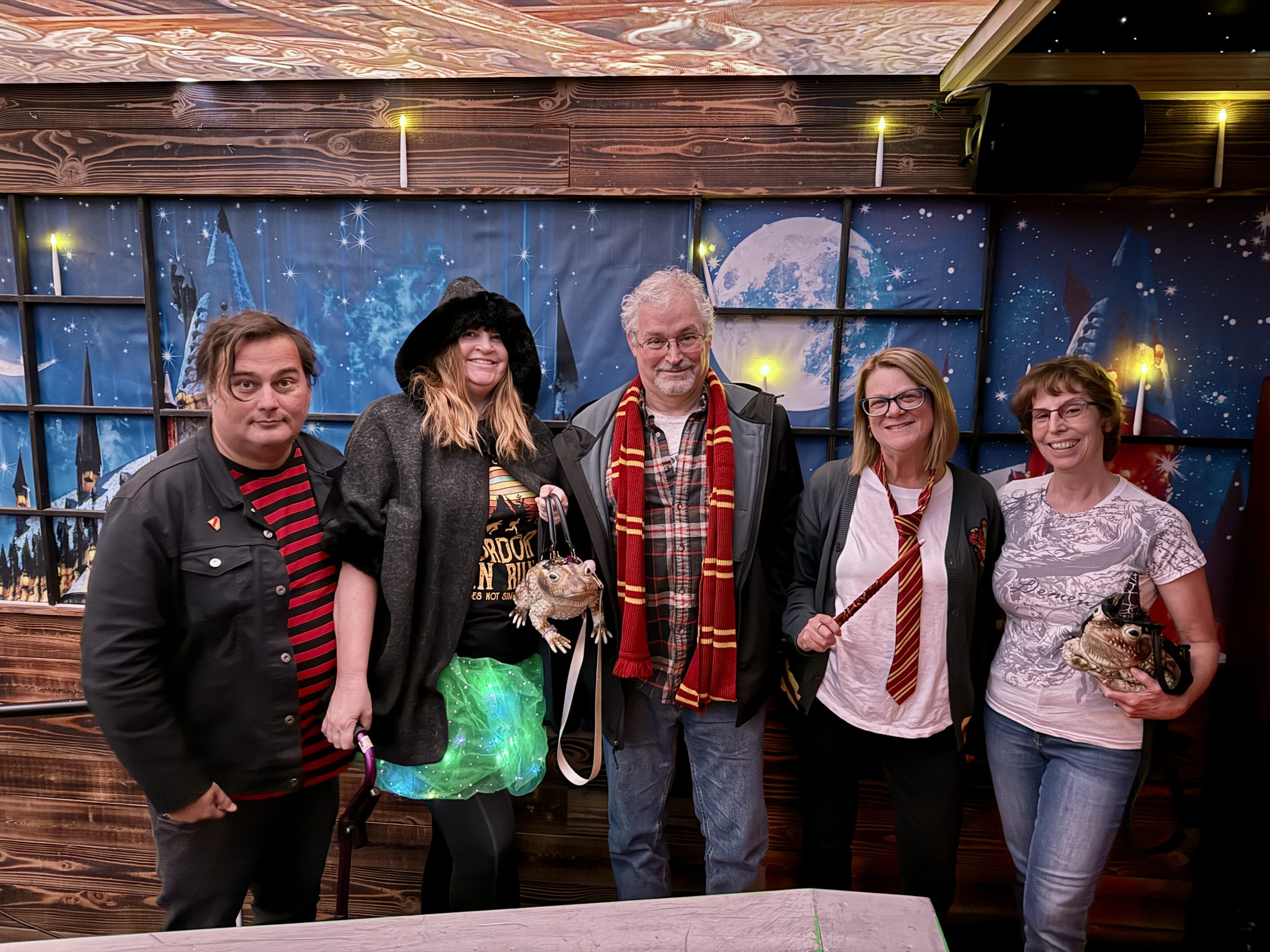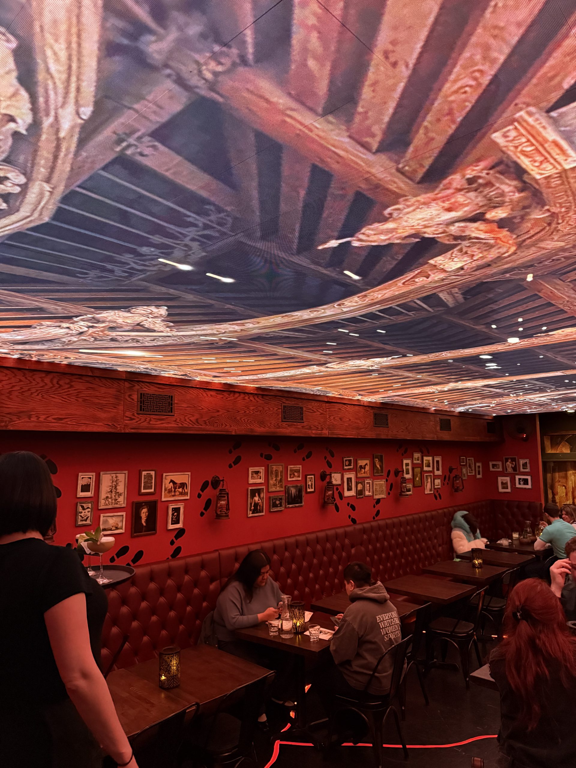 Every so often there would a light show and some thematic music, including the ceiling tiles in the lower room which are screen-based. Mostly though we spent the afternoon in conversation with a variety of dance tracks (Charli XCX, Dua Lipa) playing in the background. Wizards & Wands also serves bar food, which our party also enjoyed.